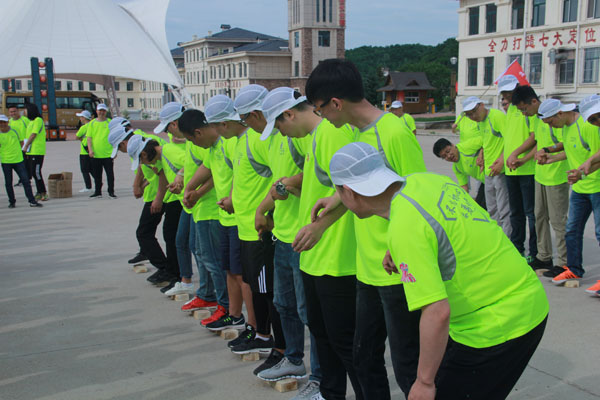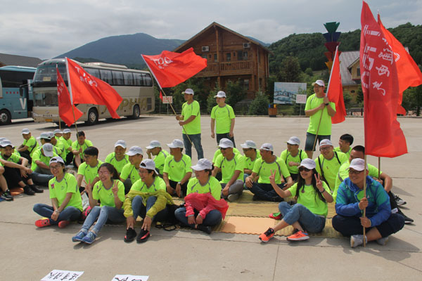14日清晨,“微風(fēng)與腳步同行,陽光共笑容一色”,亞布力鍋盔山我們來了,急切要投入青山綠水的懷抱,三個(gè)小時(shí)的車程,到了目的地大家下車首先看到的就是驚喜,我們住的是林區(qū)的木制別墅,房間里充滿了樹木的清香。大家放下包來到飯店,中午公司給大家準(zhǔn)備了可口的飯菜,大家不知是餓了還是農(nóng)家綠色菜肴的美味,吃得個(gè)快活逍遙。大家快速吃完飯就來到了拓展訓(xùn)練場地集結(jié)。